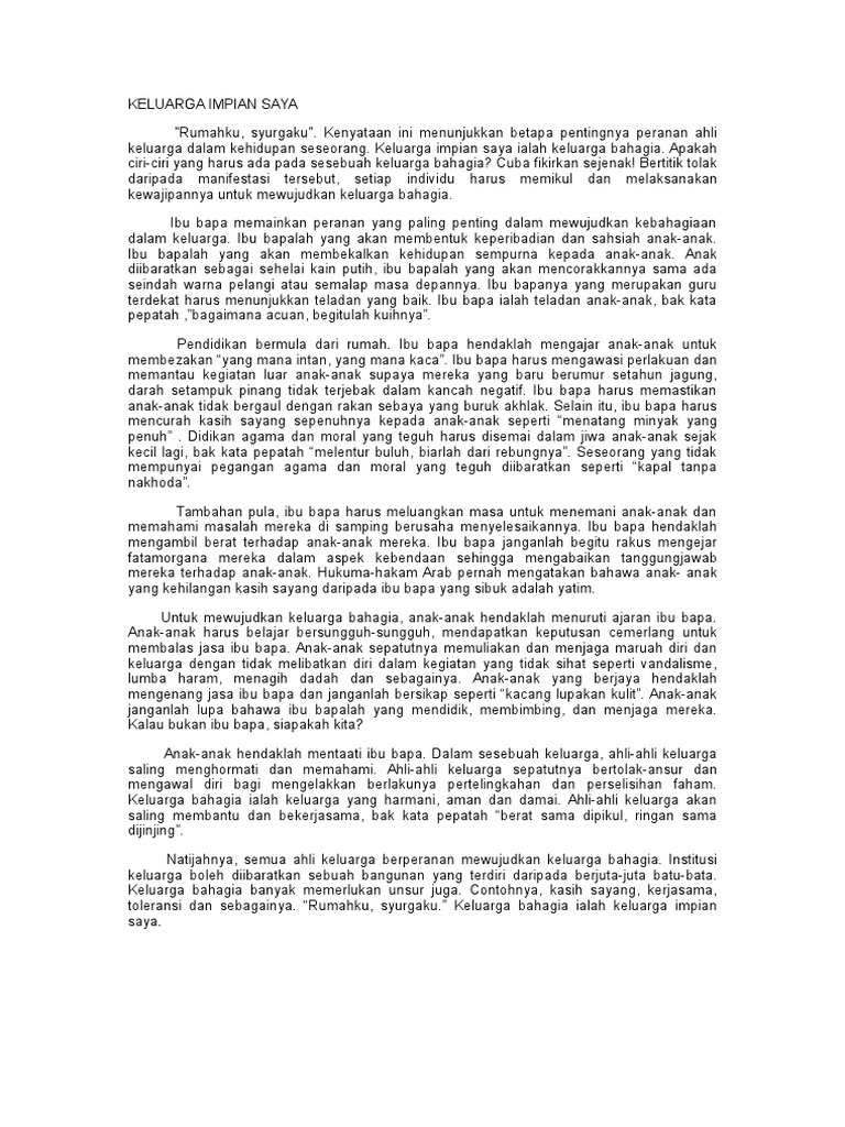 . Huraikan ciri-ciri yang dapat membina keluarga impian anda. Saya juga ingin memiliki sebuah rumah yang sederhana besarnya. Ibu bapalah yang melahirkan membesarkan dan memberikan kasih sayang.